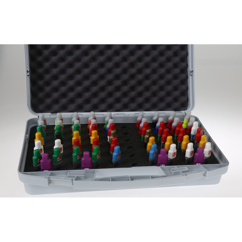 For individual settings you can choose between three different inserts: for 60 SI-Cards, or for 18 BSF8 stations and additionally you can choose a third variant, especially for the School and Training Set. The transport case grey-S designed has a size of 391 x 304 x 104mm.